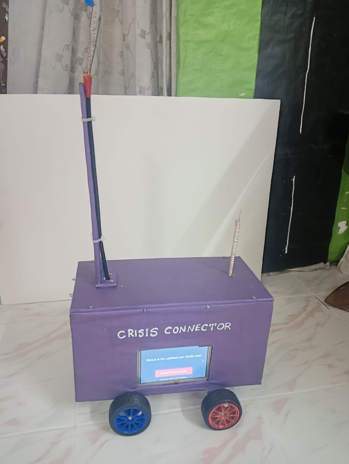 Its an autonomous robot which will work in disaster response. In natural disaster times, communication may broke down. Then crisis connector can establish temporary mobile ntework for 8 hours. Also people can receive meesages from government and also request emergency services through this robot if there is not network in that area. Crisis-connctor is a demo robot. It will be connected to satellite in real life. If you want to know more, then contact me through FB or email ;)