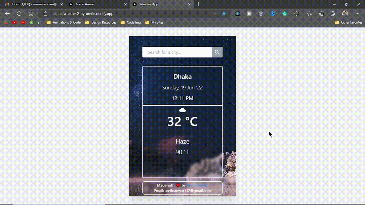 It's a simple weather app to know the conditions of weather. It has a search bar to search the city. It shows current weather conditions. It can auto-detect location ;)